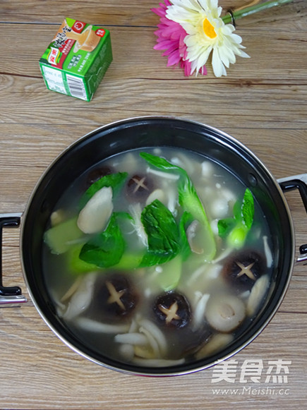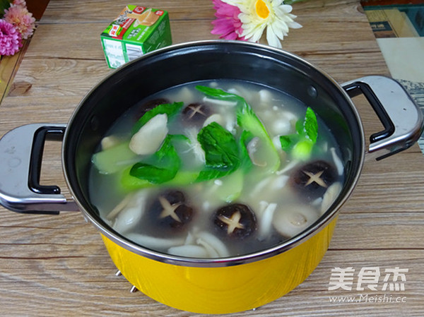 4.将焯水后的菌菇,倒入锅中,烧开,煮5分钟即可
