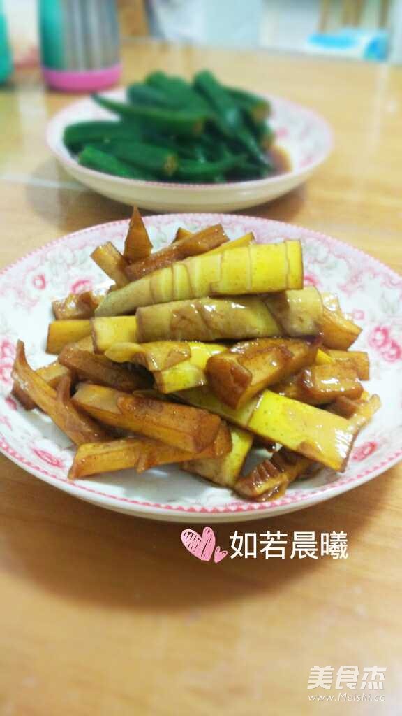 炒的时候加油需要比平常做菜略多一点,炒出来的春笋特别光亮。 口感是非常鲜美的。