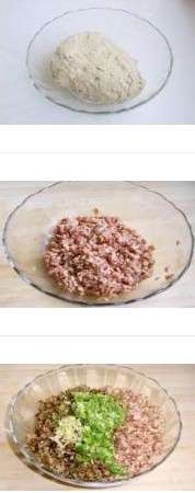 食材明细:燕麦面50克 小米面50克 荞麦面50克 黄豆面50克 全麦粉50克 黑米面50克 面粉 100克 酵母 3克 肉馅 500克 盐 适量 葱 适量 酱油 适量 花椒面 适量 五香粉 适量