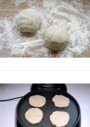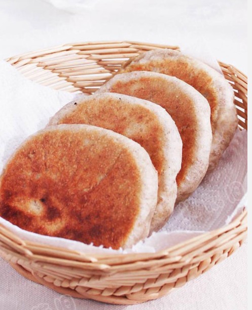 8. 用擀面杖擀成皮,包入馅料,捏紧,用平底锅或者电饼铛子慢慢烘烤至两面金黄起酥即可。