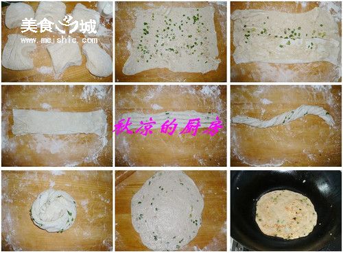 6.煎锅注少许油,放入擀好的饼胚,小火两面烙熟即可。