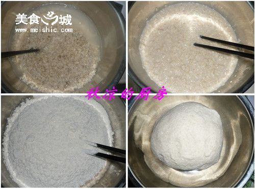 材料:速食麦片100克,沸水400克,面粉400-450克。
