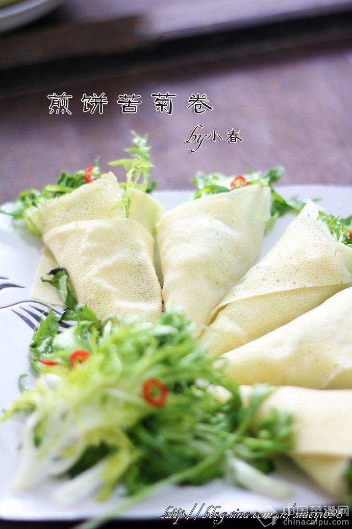2、苦菊洗干净一定要淋干水分,汁调的浓缩一点,不要太多,不能放置很久再吃,煎饼被汁泡软就不好吃了。