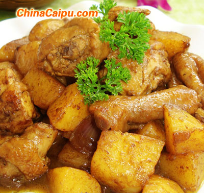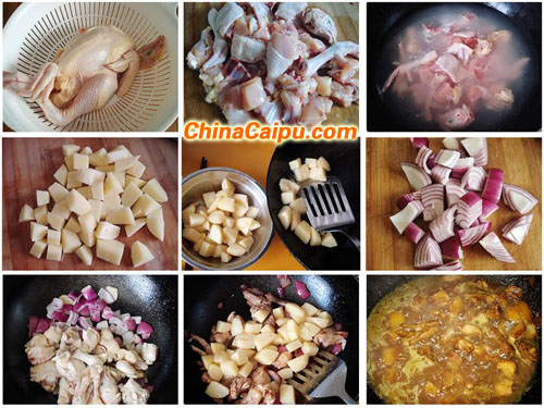 鸡1只(重约650克)、咖喱粉20克、土豆2个、洋葱半个、姜2片、糖1/2汤勺、盐适量、料酒1汤匙、生抽2汤匙